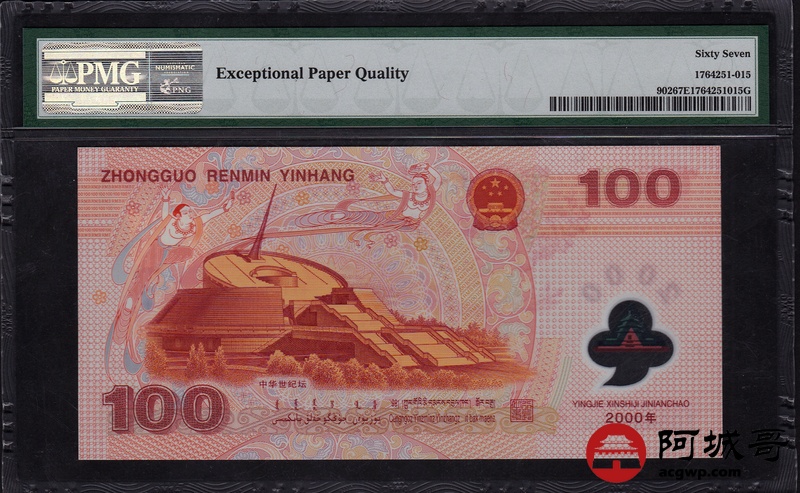 Lot:28 2000年 壹佰圆 千禧龙钞 PMG 67 EPQ