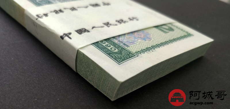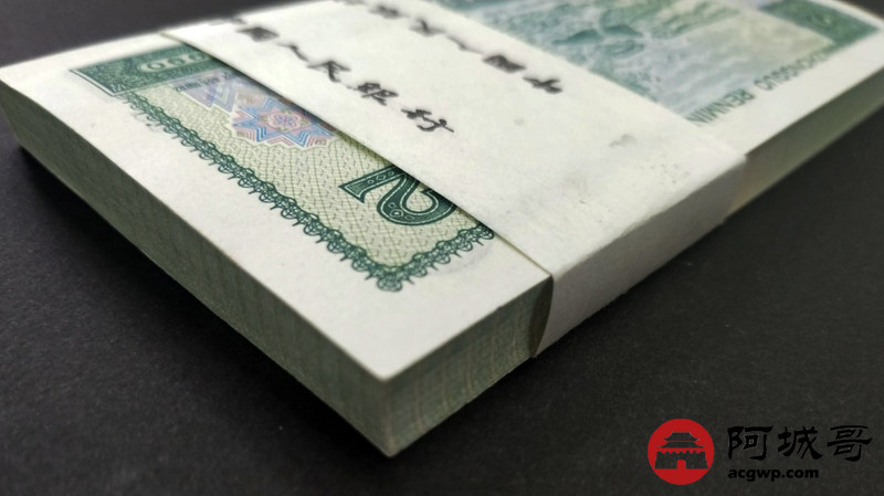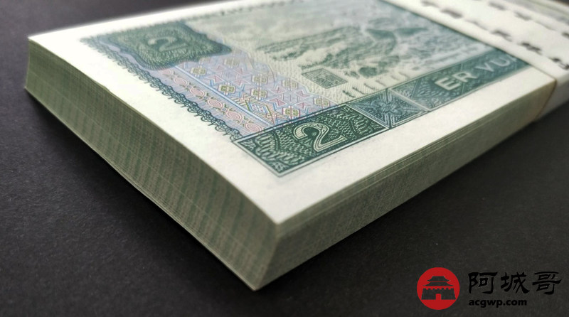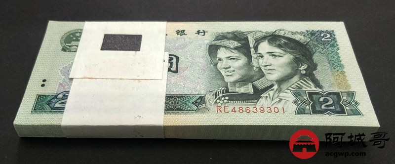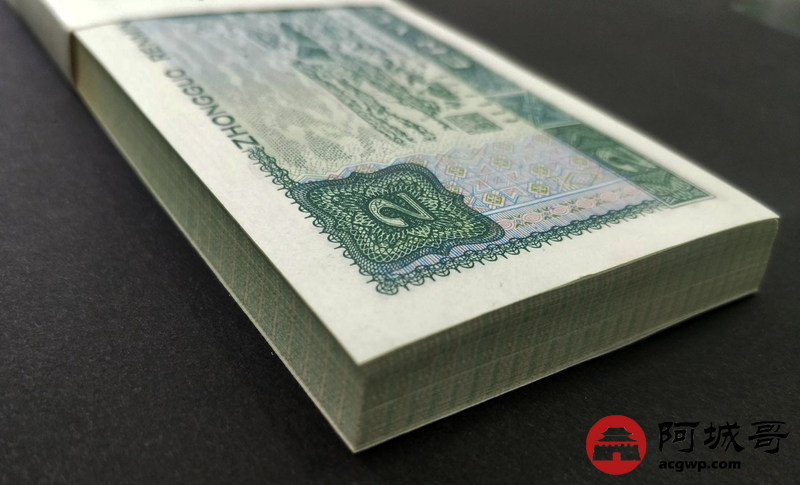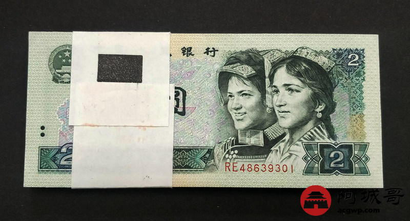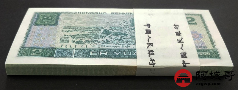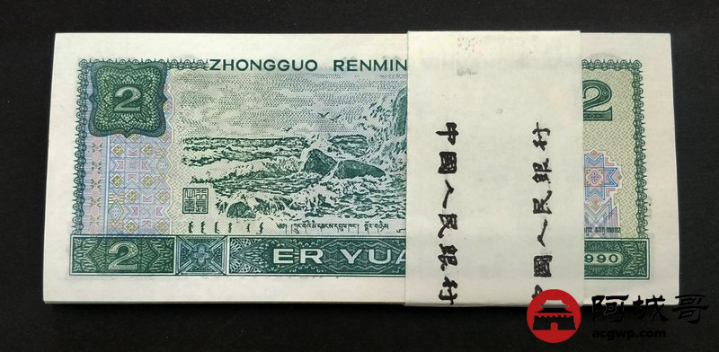 Lot:13 四版人民币 1990年 贰圆 中国人民银行 一刀百联 原票全新 灯下无斑