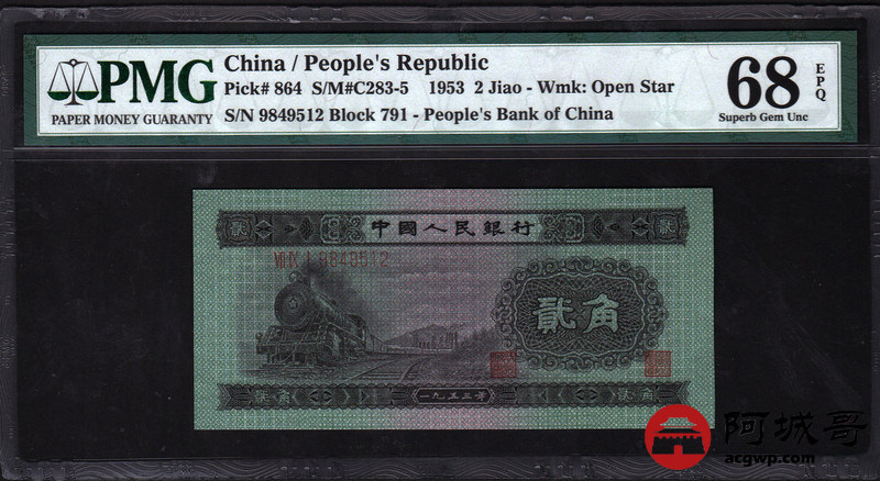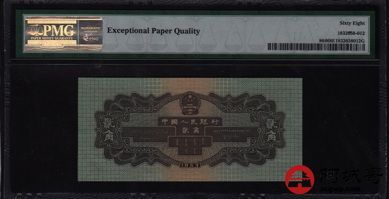Lot:4 二版人民币 1953年 贰角火车头 高分PMG 68EPQ