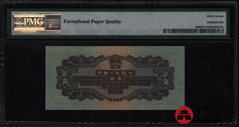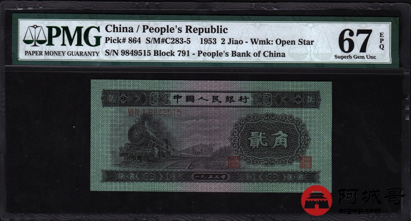 Lot:15 二版人民币 1953年 贰角火车头 PMG 67EPQ