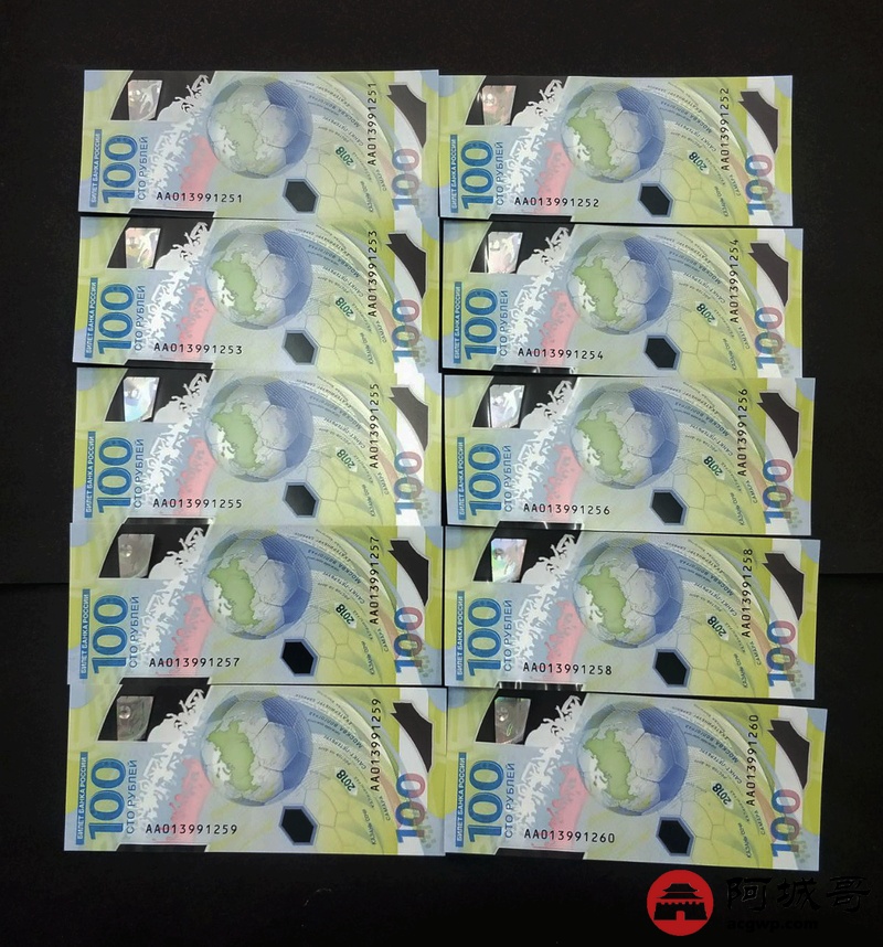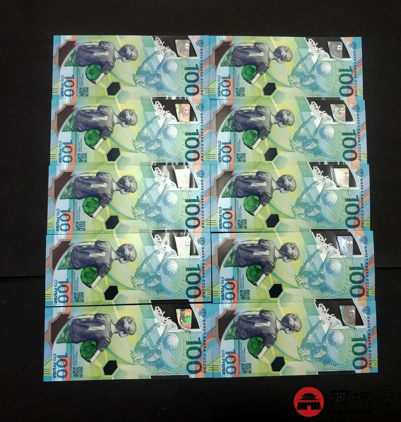 Lot:2 俄罗斯世界杯纪念钞 10连 原票全新