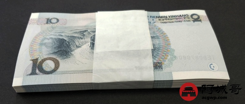 Lot:10 五版人民币 1999年 拾圆 中国人民银行 一刀 好号无4 原票全新