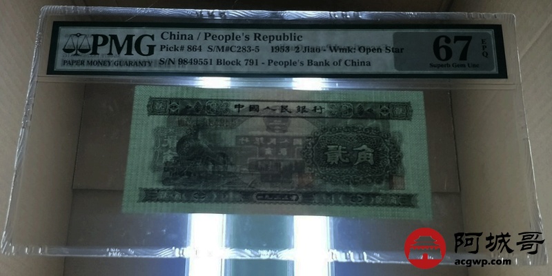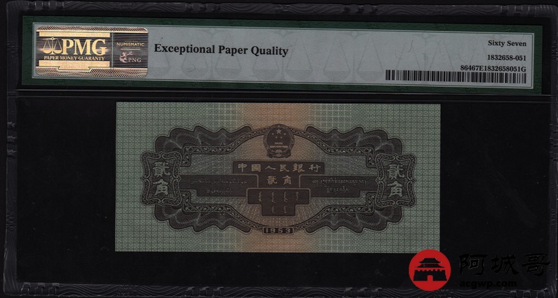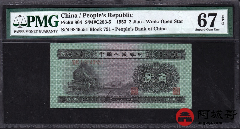 Lot:17 二版人民币 1953年 贰角火车头 PMG 67EPQ