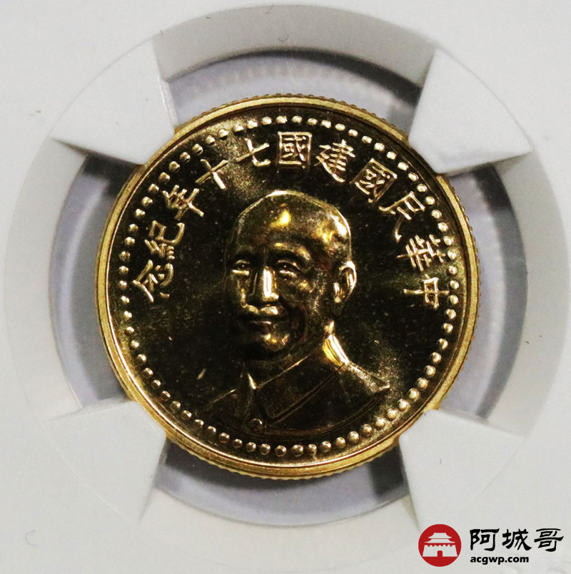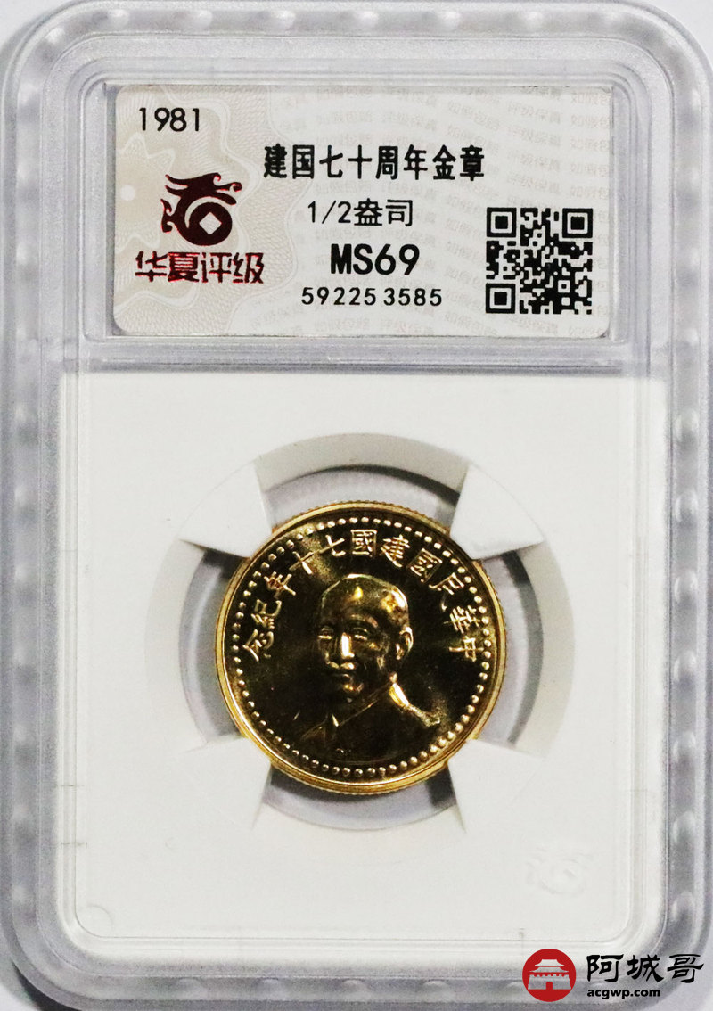 Lot:31 台湾建国七十周年金章蒋公1981年1/2盎司金 华夏评级 MS69