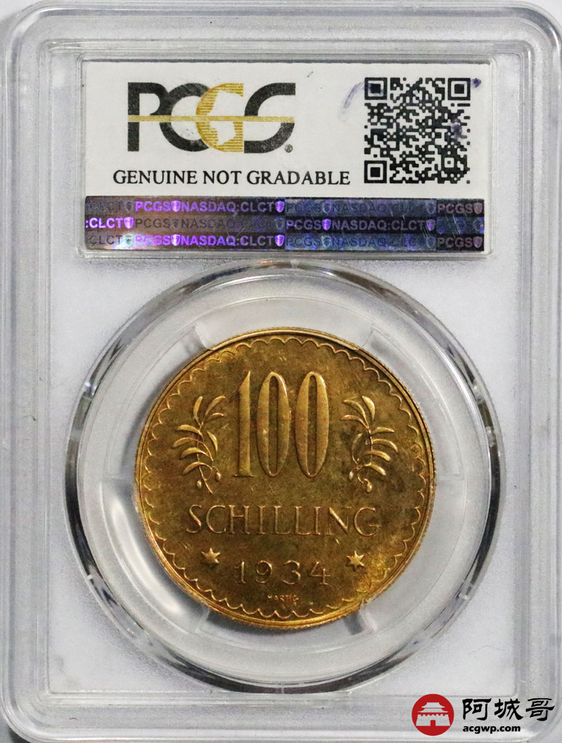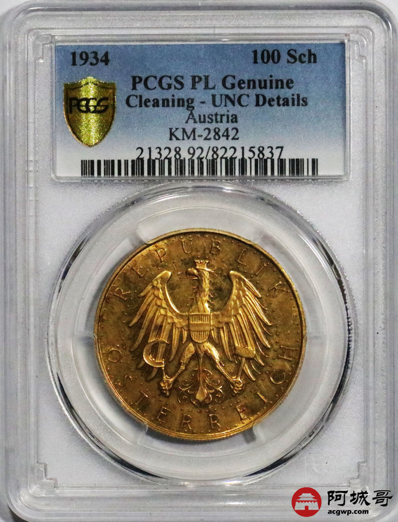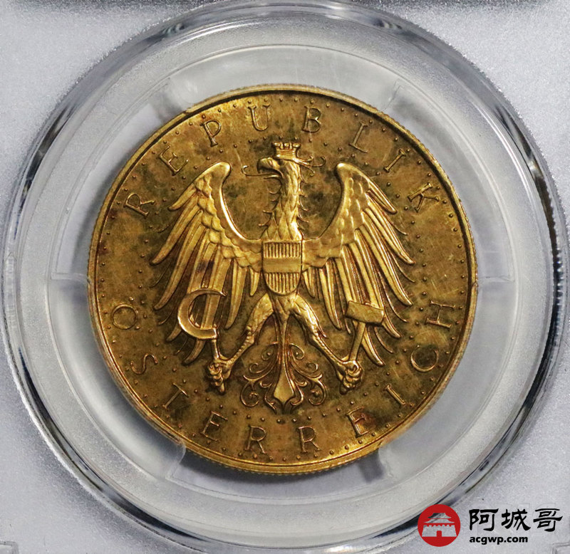 Lot:38 精美制奥地利鹰徽1934年100先令大金币23.524g PCGS PL