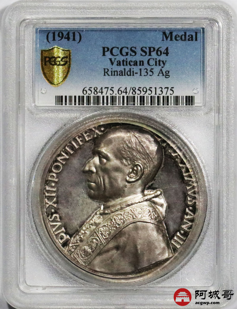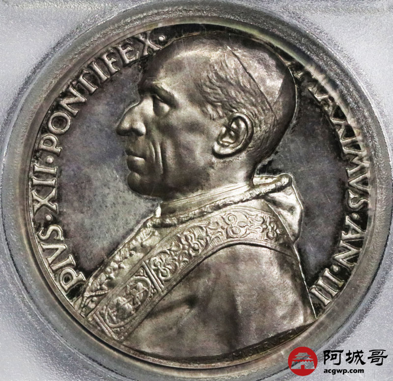 Lot:45 梵蒂冈教皇依护十二世1941年精制精美大银章 高浮雕 PCGS SP64