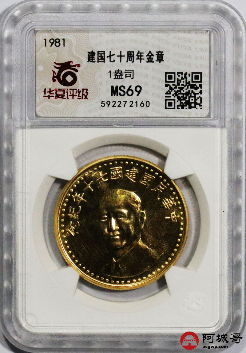 Lot:21 台湾建国七十周年金章1981年蒋公1盎司金 华夏评级 MS69