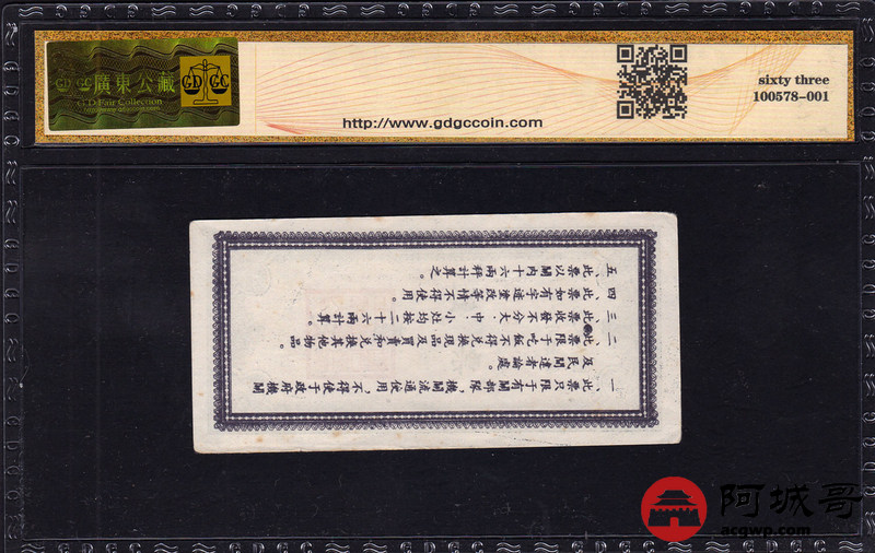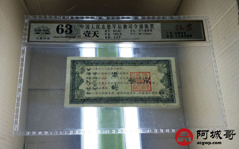 Lot:1 1952年 中国人民志愿军后勤司令部饭票 1天 GDGC 63