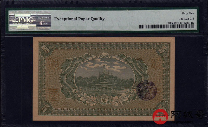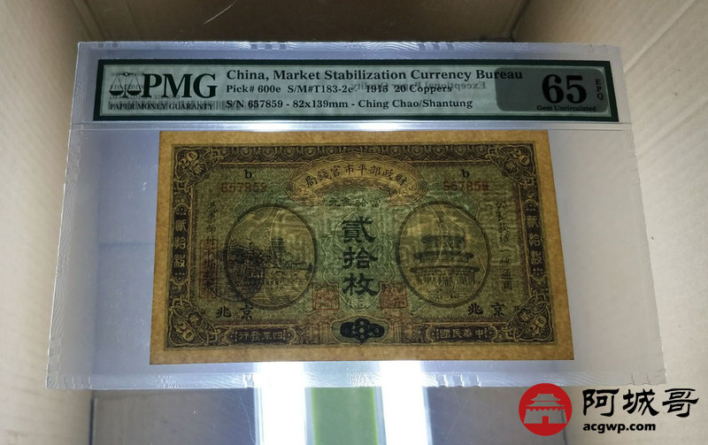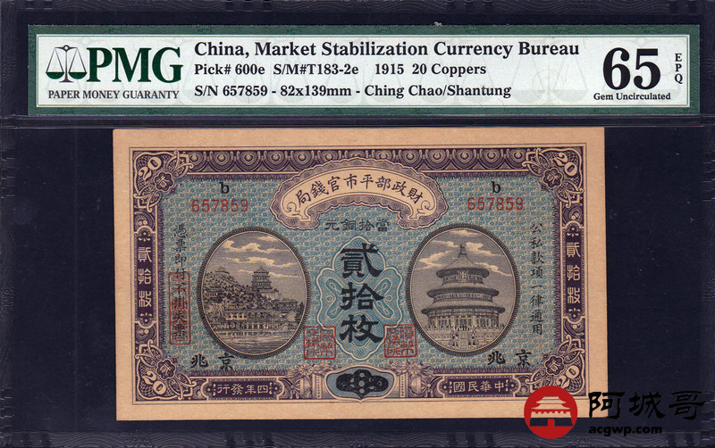 Lot:29 民国四年 贰拾枚 财政部平市官钱局 京兆地名 PMG 65 EPQ