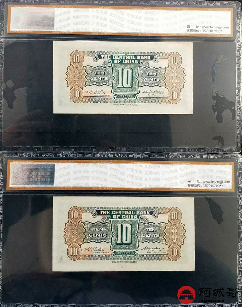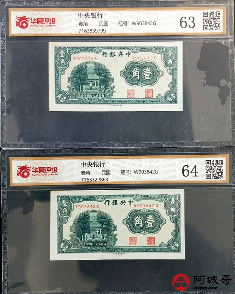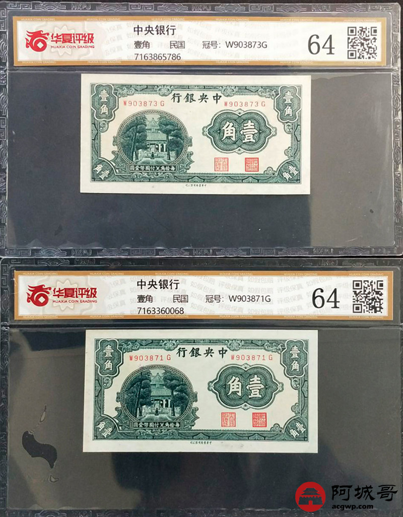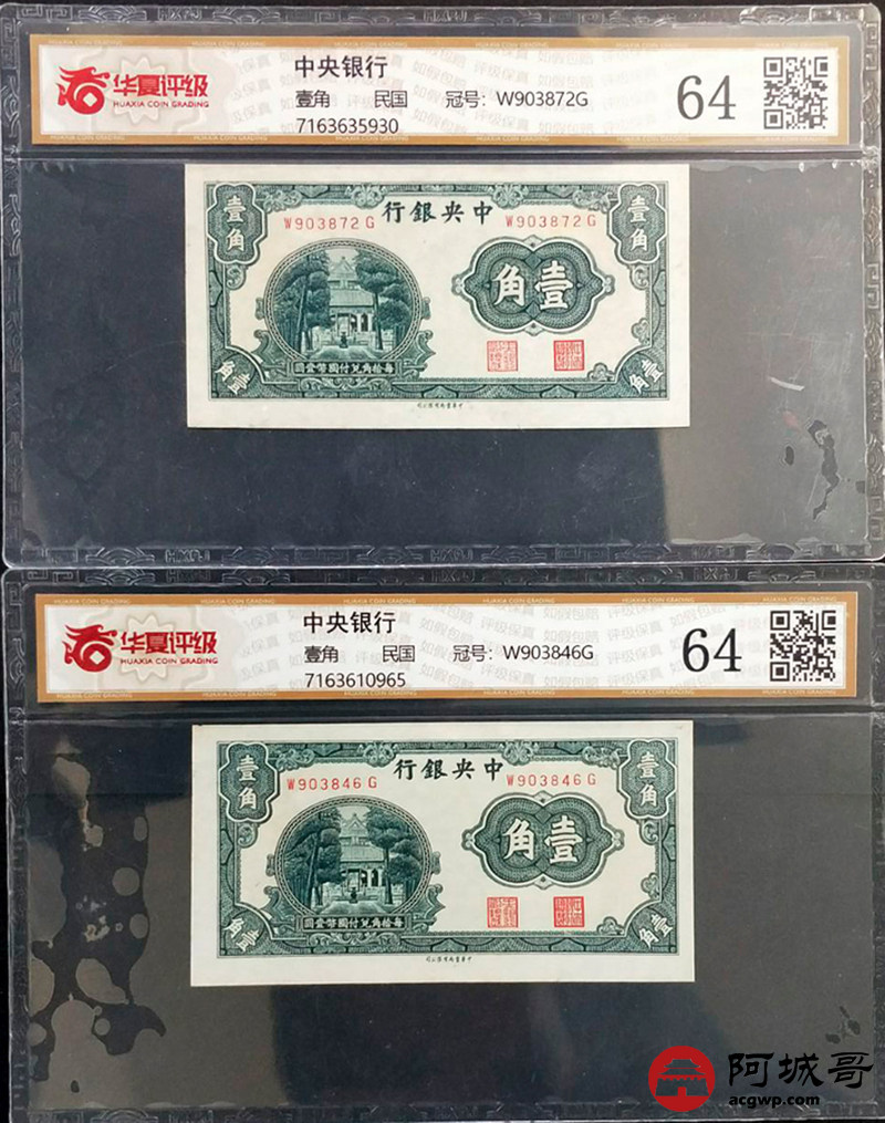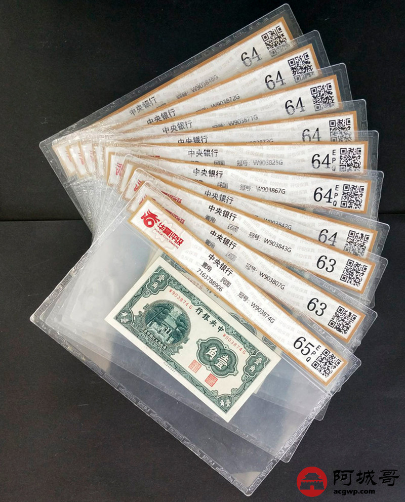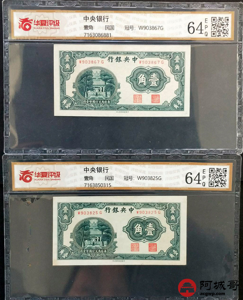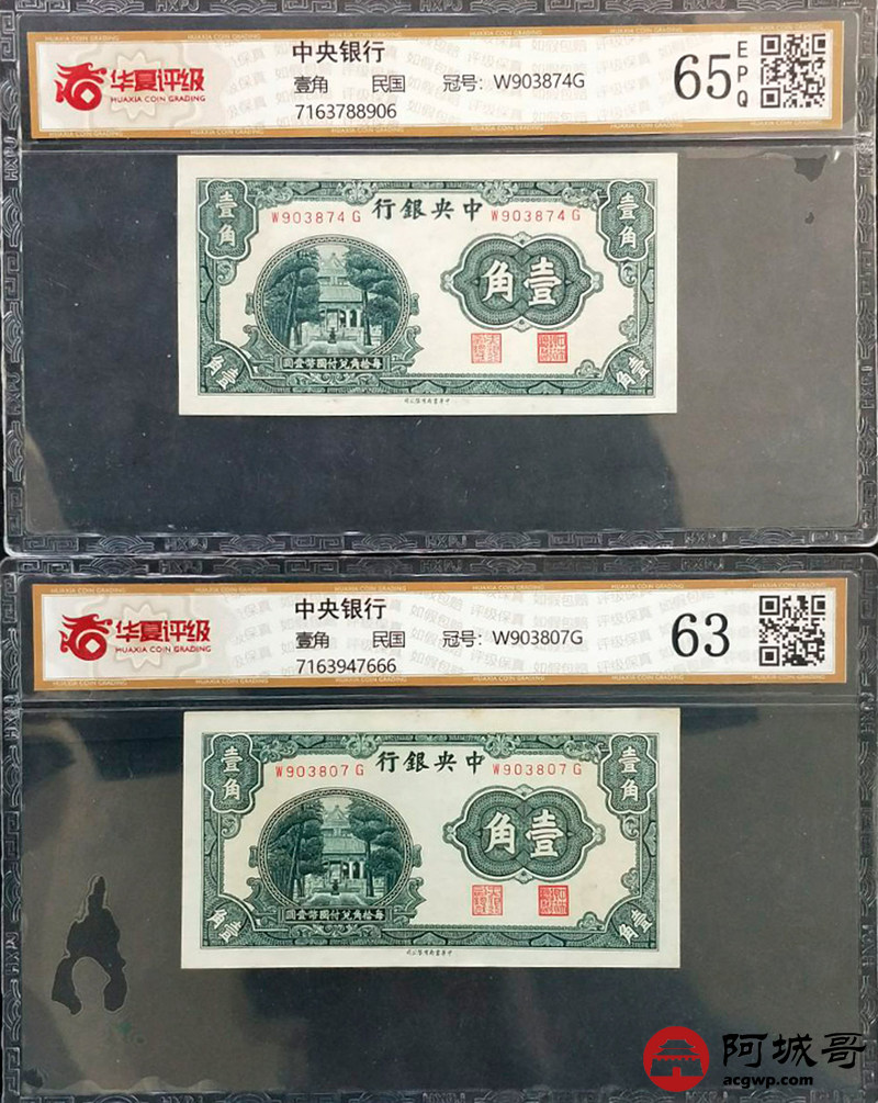Lot:23 壹角 中央银行 华夏评级 65 EPQ、64分等 10张