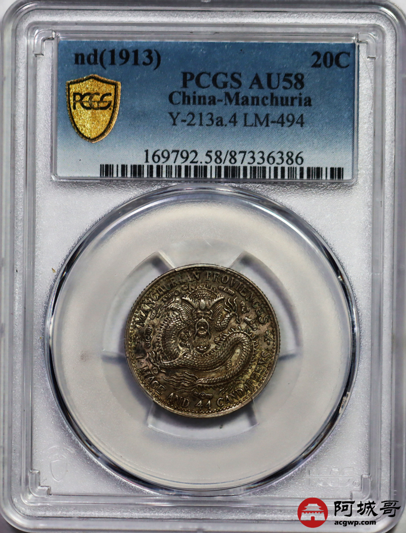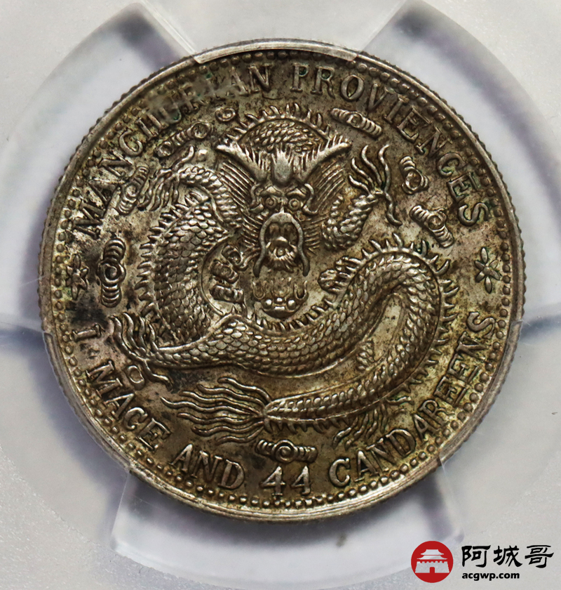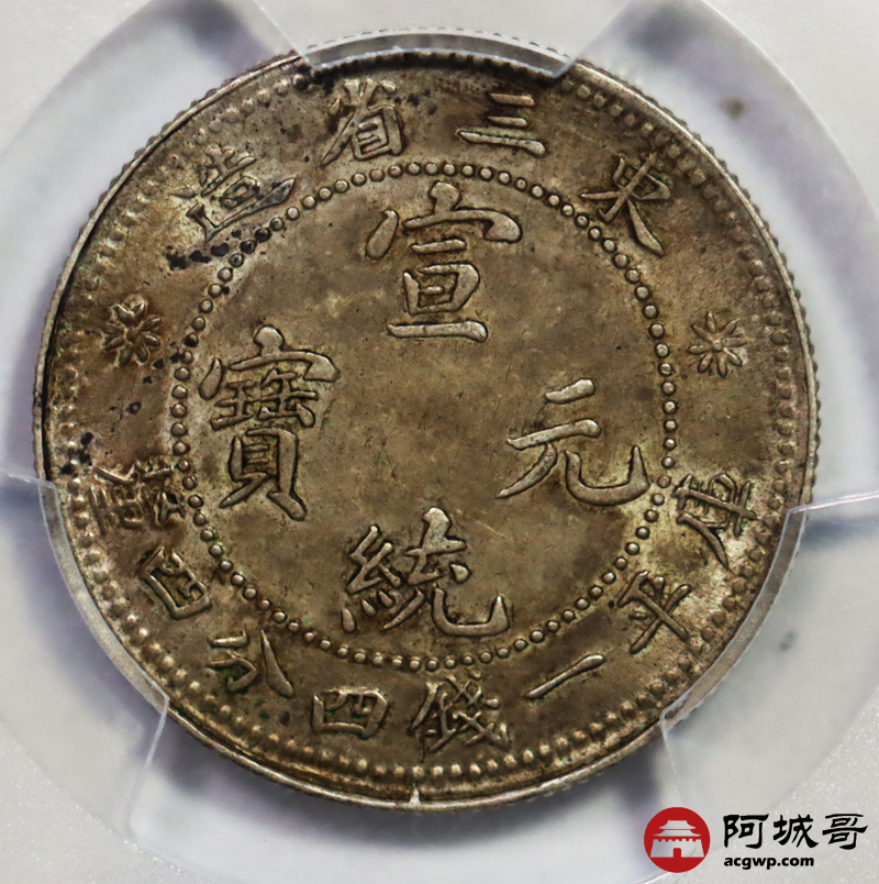 Lot:45 原味 包浆 东三省 宣统龙洋两角 PCGS AU58