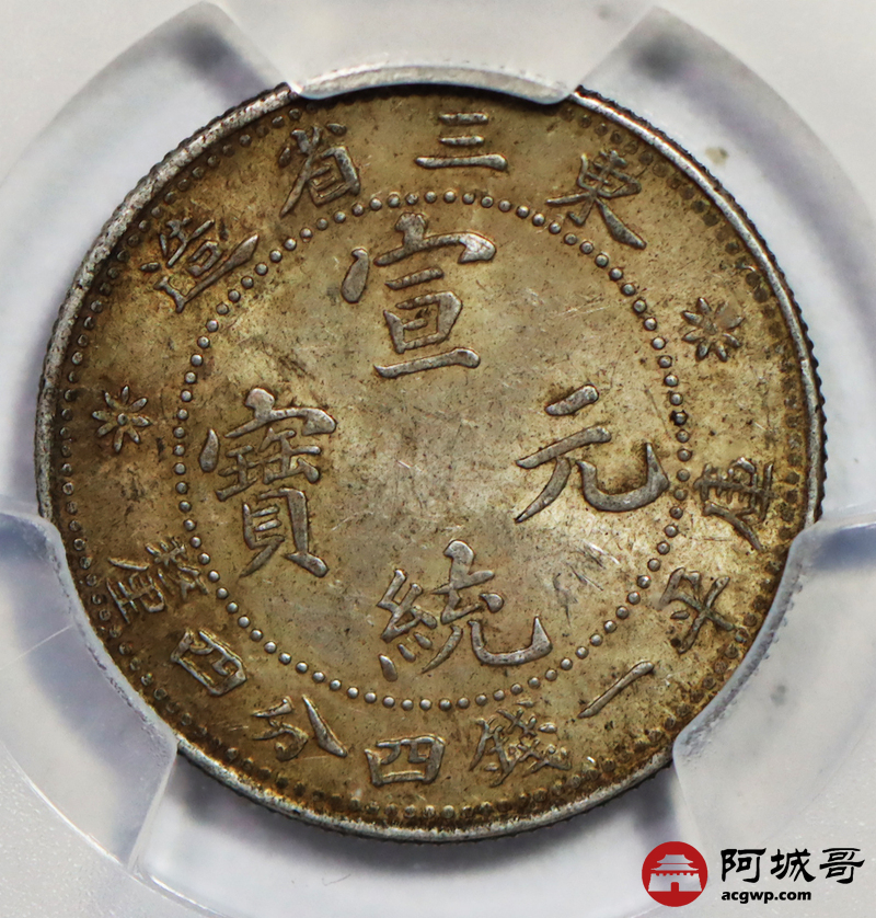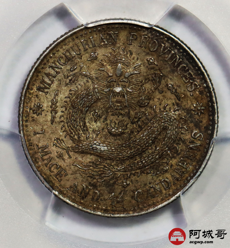 Lot:51 原味五彩 包浆 东三省宣统龙洋 两角 PCGS MS 62