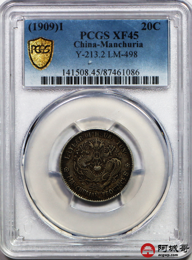 Lot:28 原味 包浆 东三省宣统 龙洋 两角 PCGS XF 45