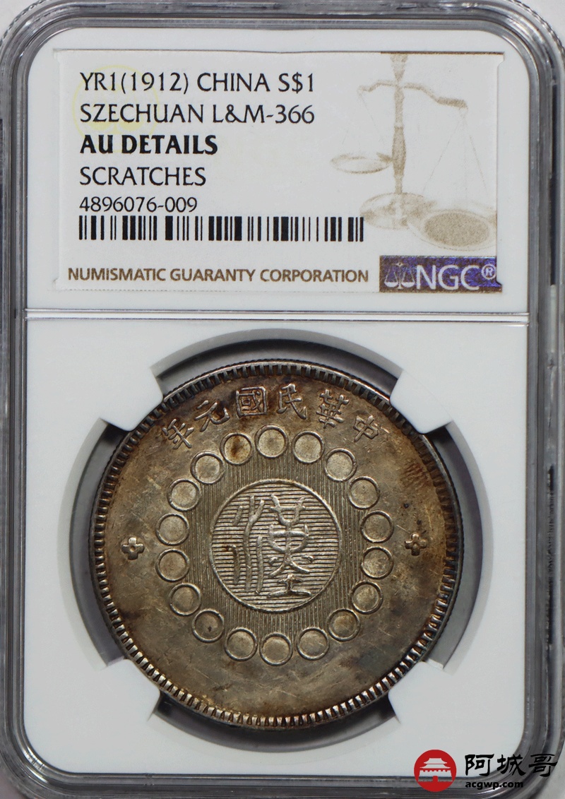 Lot:26 深打五彩 四川军政府壹圆 NGC AU
