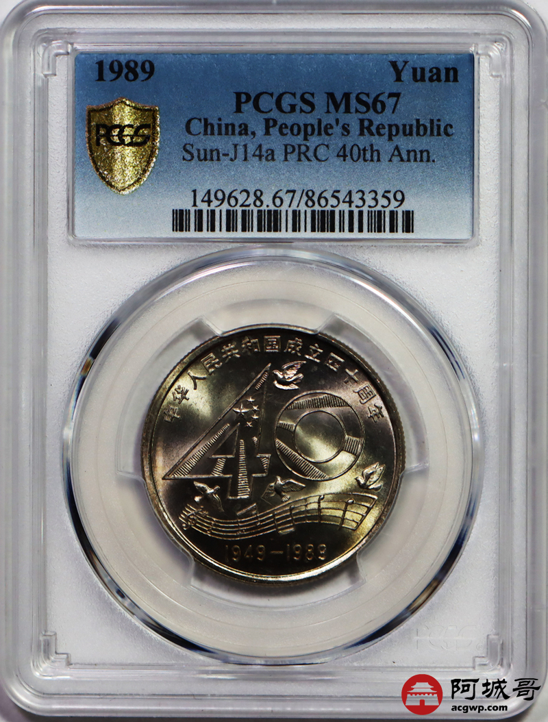 Lot:55 1989年中华人民成立40周年纪念币 PCGS MS67