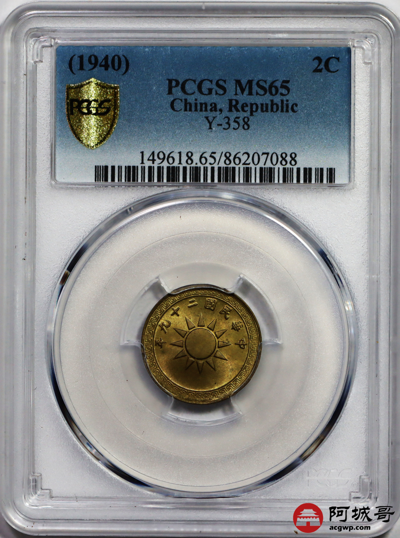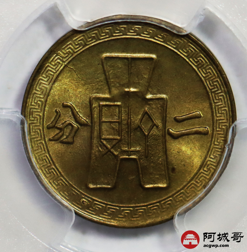 Lot:19 民国二十九年布图 二分 PCGS MS65