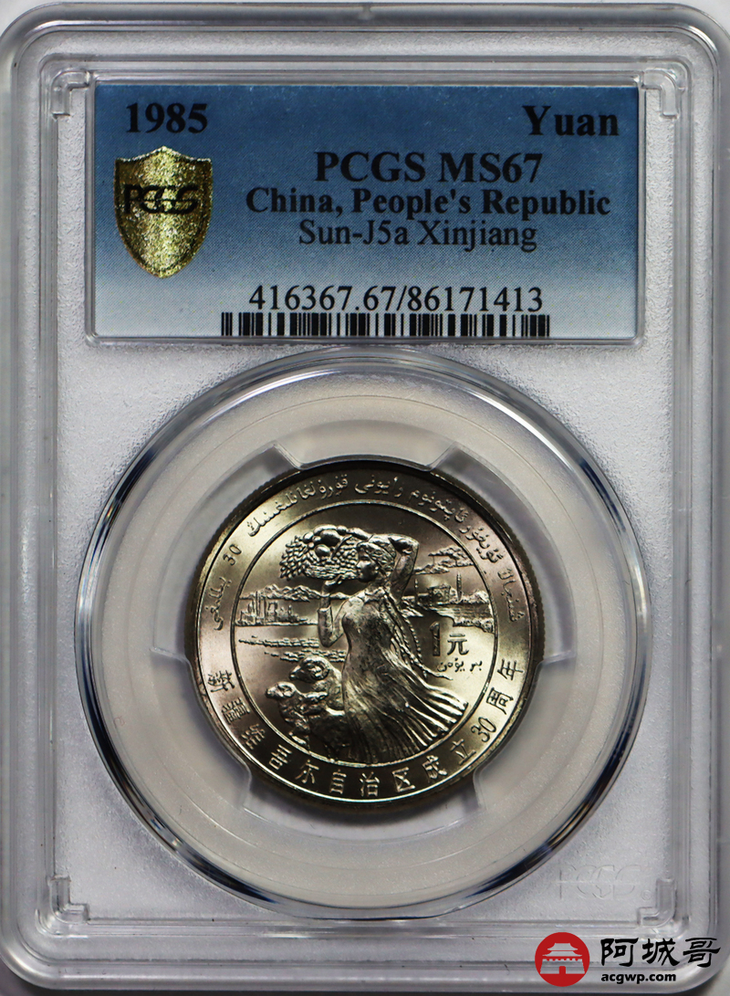 Lot:3 1985年新疆维吾尔自治区成立30周年纪念币 PCGS MS67