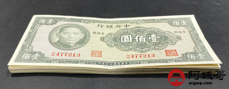 Lot:13 中央银行民国30年美商保安版 13-62 50张连号 85成新以上