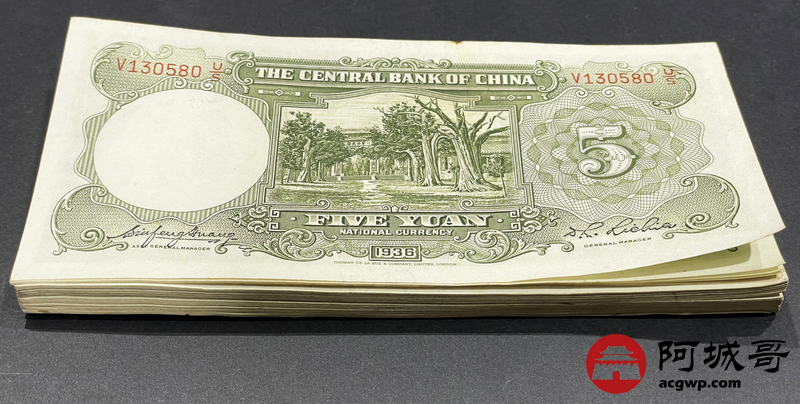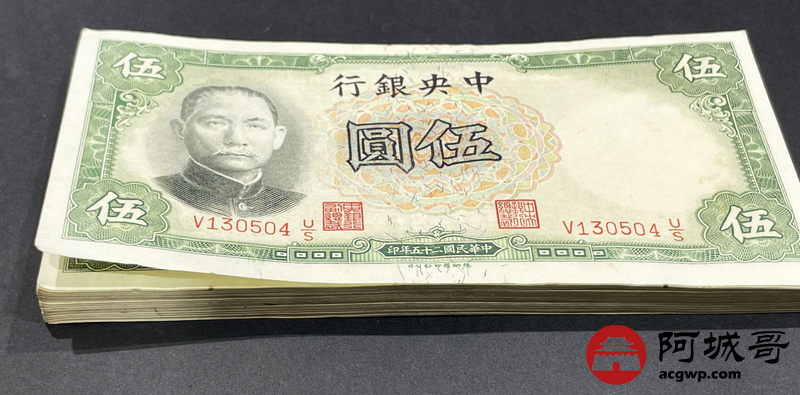 Lot:16 民国25年 中央银行伍圆 04-80 76枚连号 缺75 共76张 85成新以上