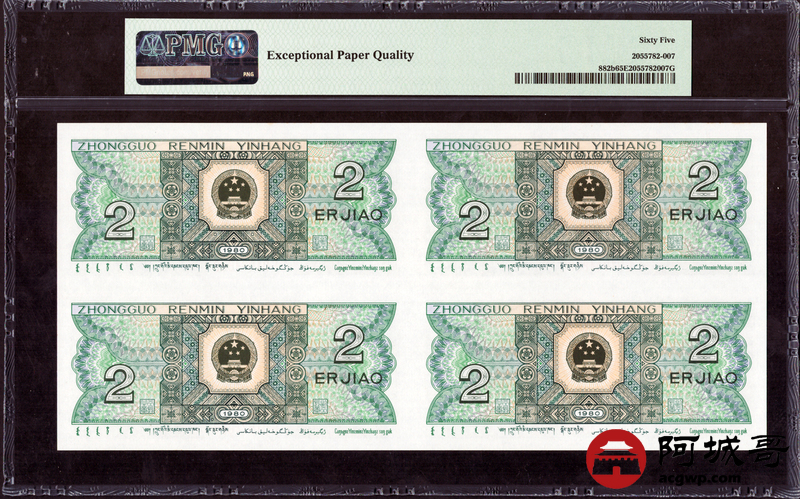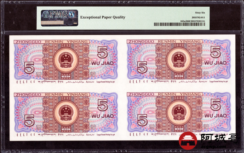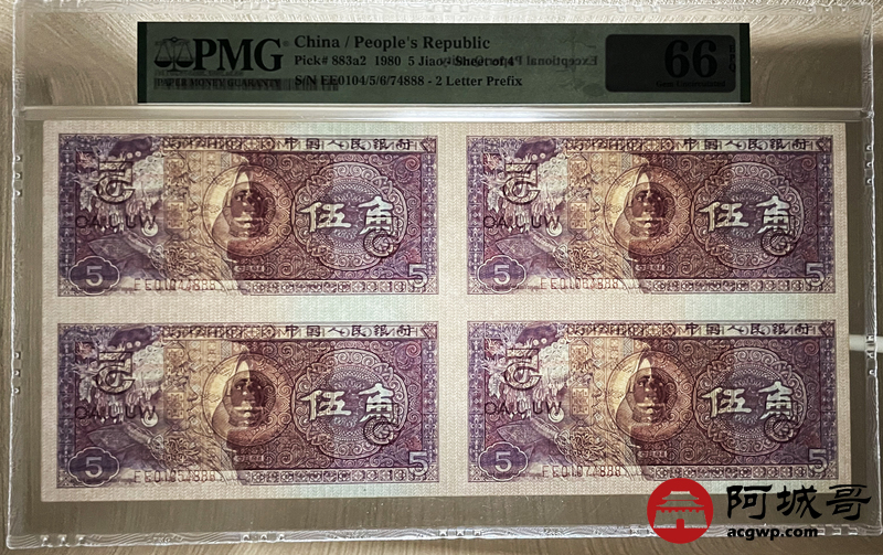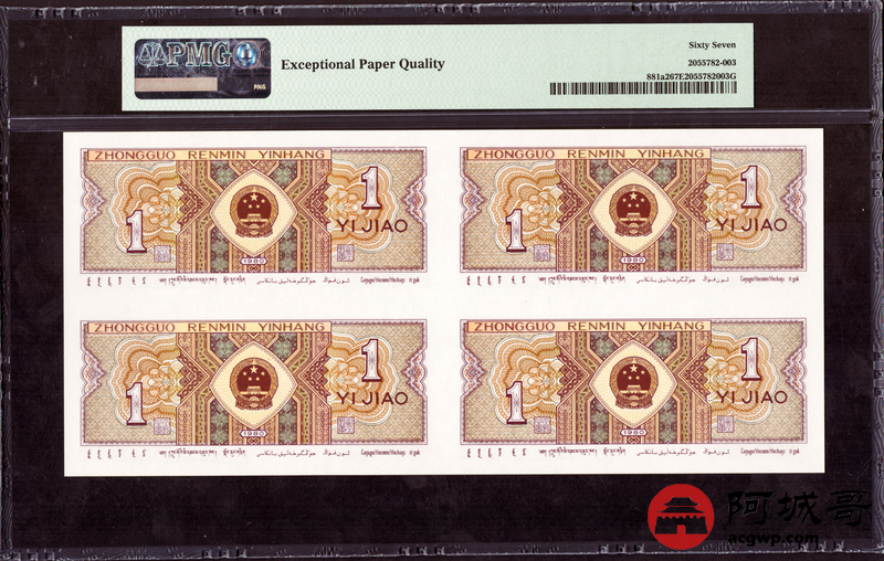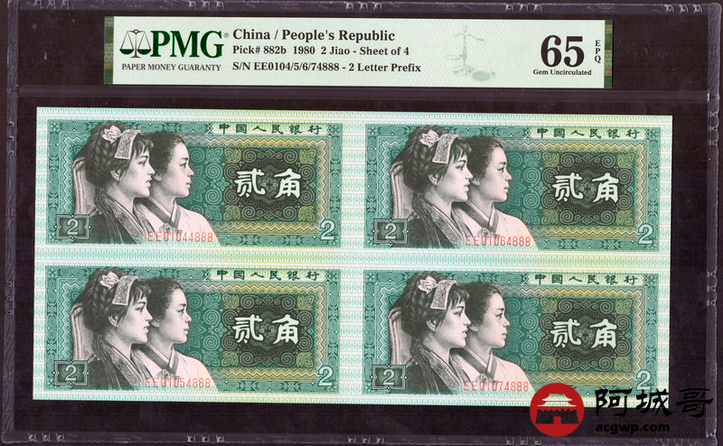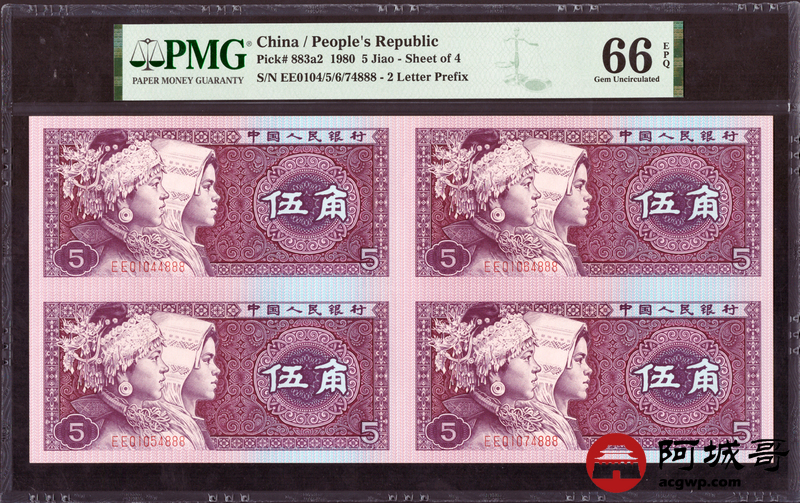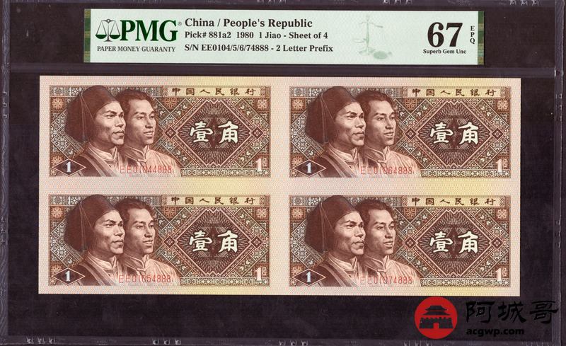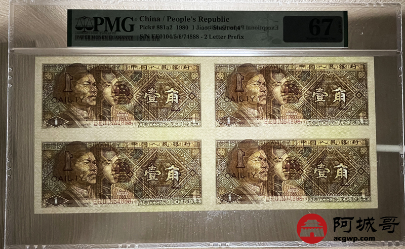 Lot:20 1980年四连体 壹角 贰角 伍角 尾号888 PMG 67EPQ PMG 65EPQ PMG 66EPQ