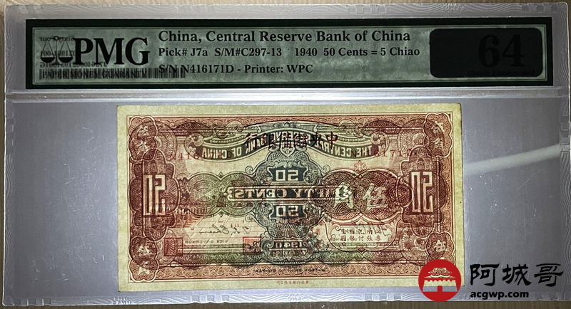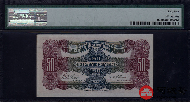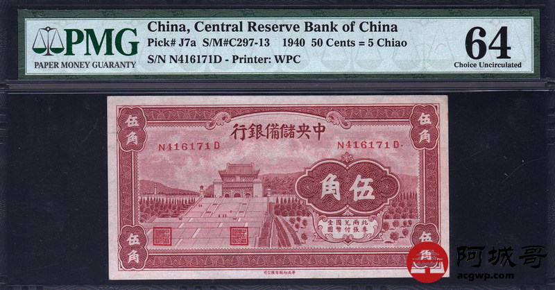 Lot:7 1940年 伍角 中央储备银行 PMG 64