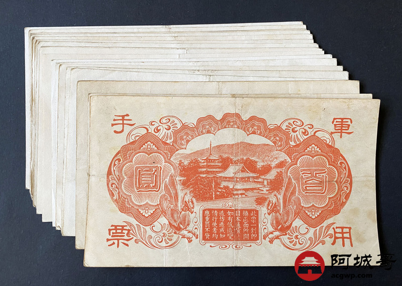 Lot:25 日本军用手票 佰圆 101张 89成新