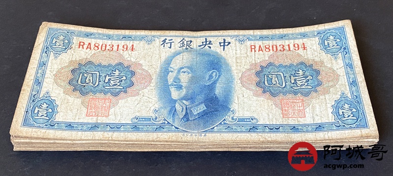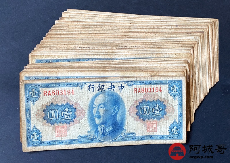 Lot:6 中央银行 1945年 壹圆 43张 86成新