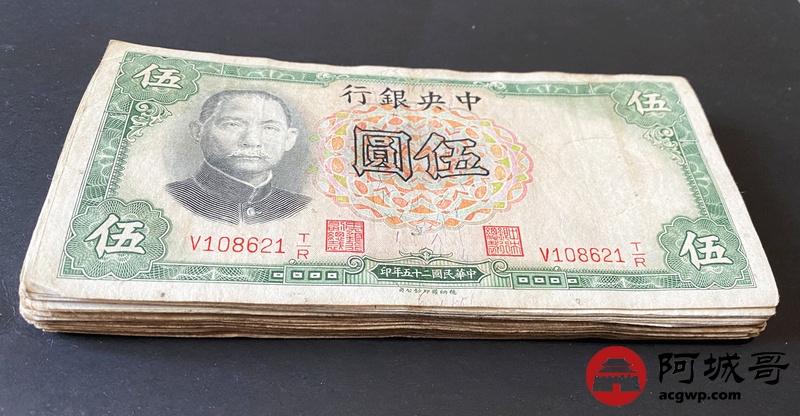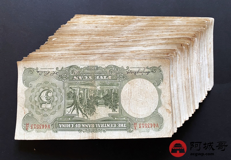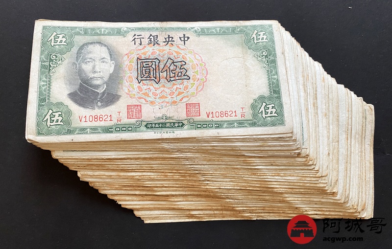 Lot:21 民国25年 中央银行 伍圆 81张 8至85成新
