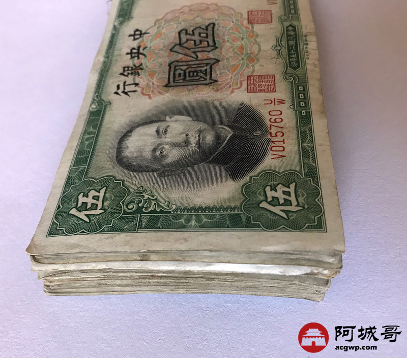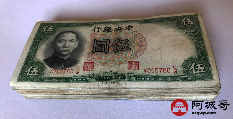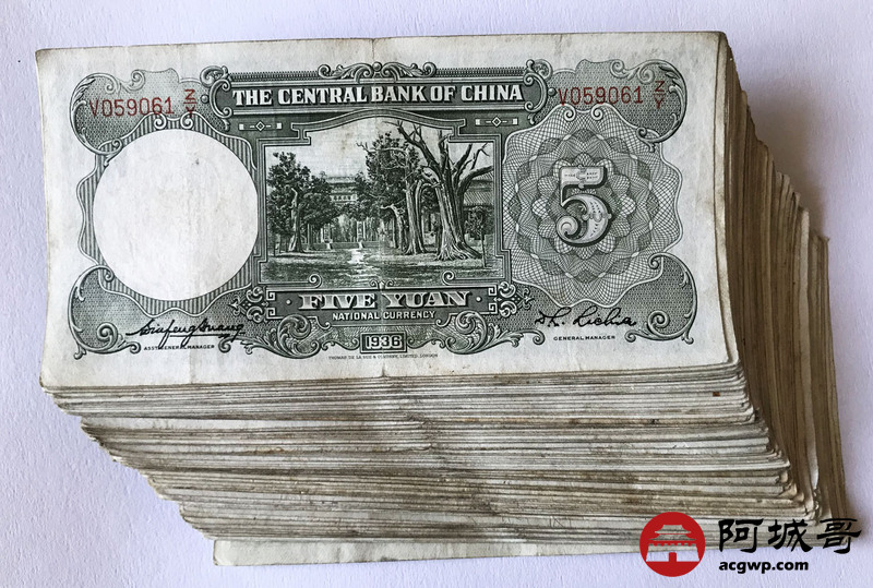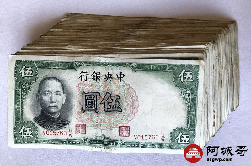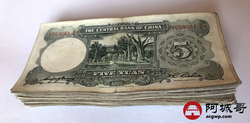 Lot:10 中央银行 民国25年 伍圆 107张 88成新