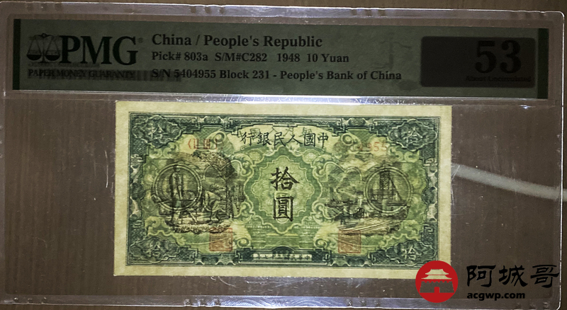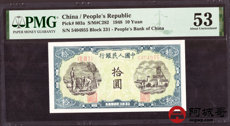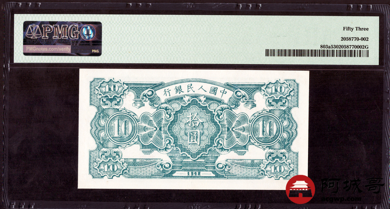 Lot:5 一版 民国37年 拾圆灌田与工厂 PMG 53