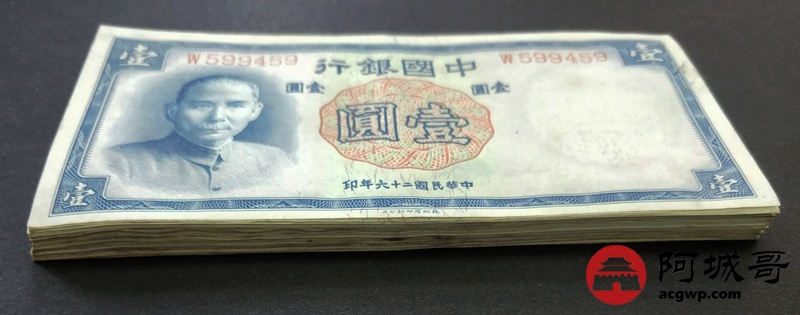 Lot:26 民国二十六年 壹圆 德纳罗版 中国银行 49张 部分连号 原票 9至94成新