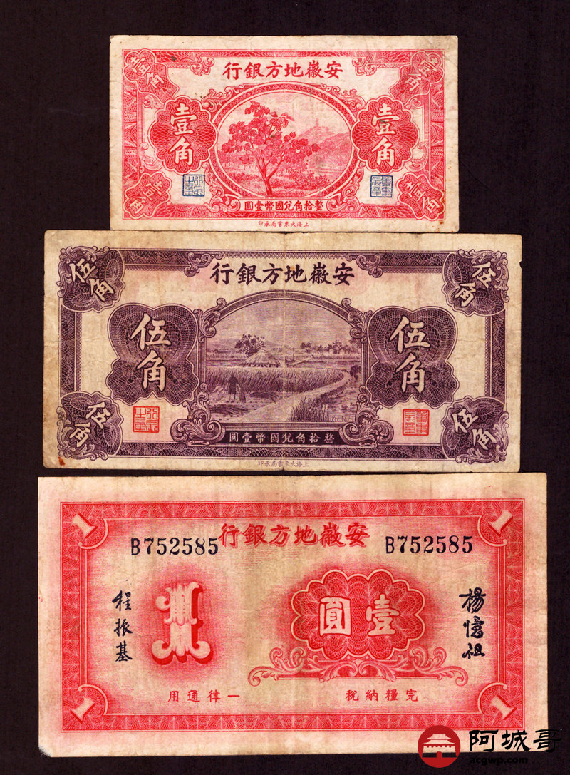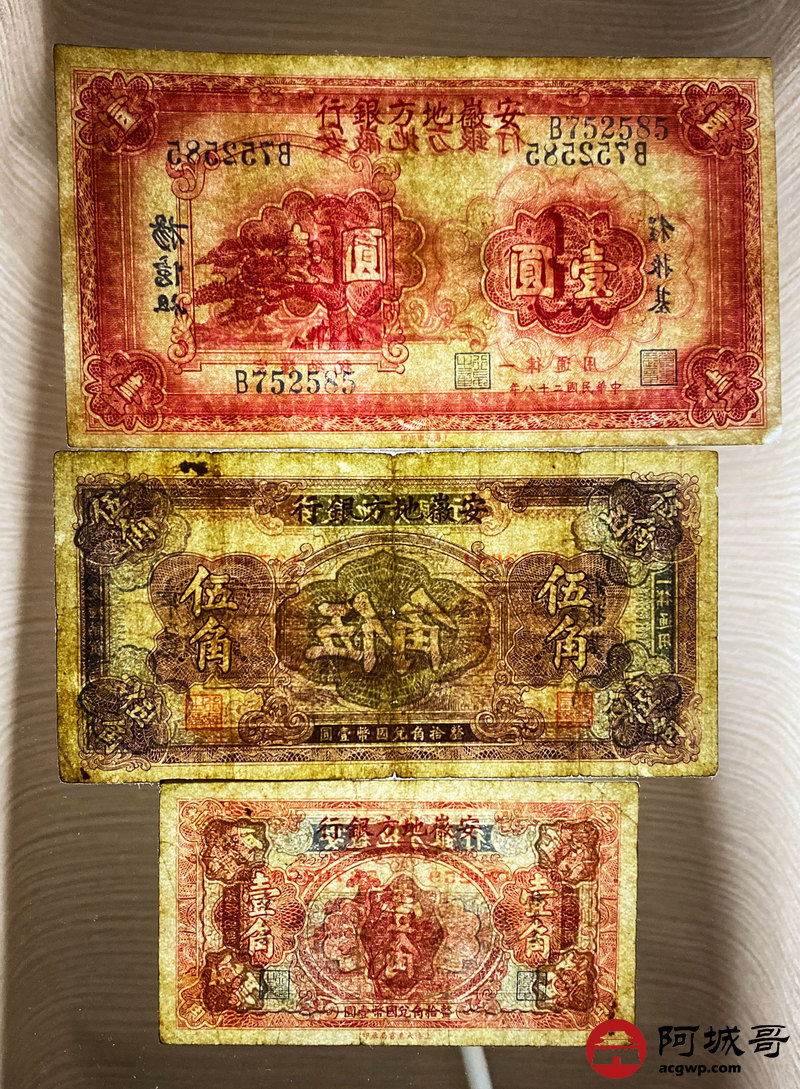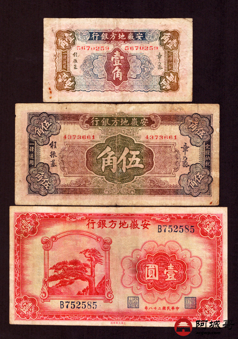 Lot:18 安徽地方银行 壹角、伍角、壹圆 78至88成新 三张