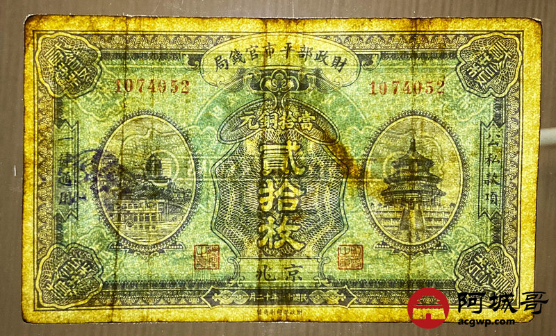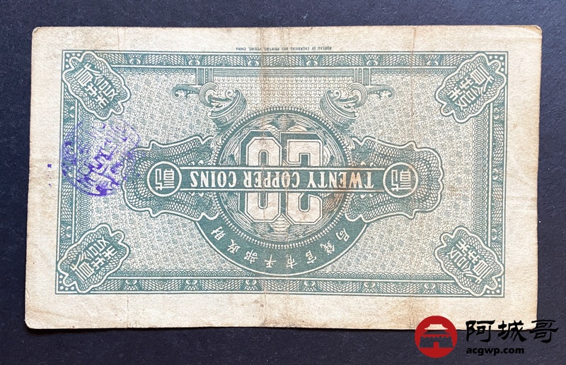 Lot:23 财政部平市官钱局 民国11年 铜元贰拾枚 88成新