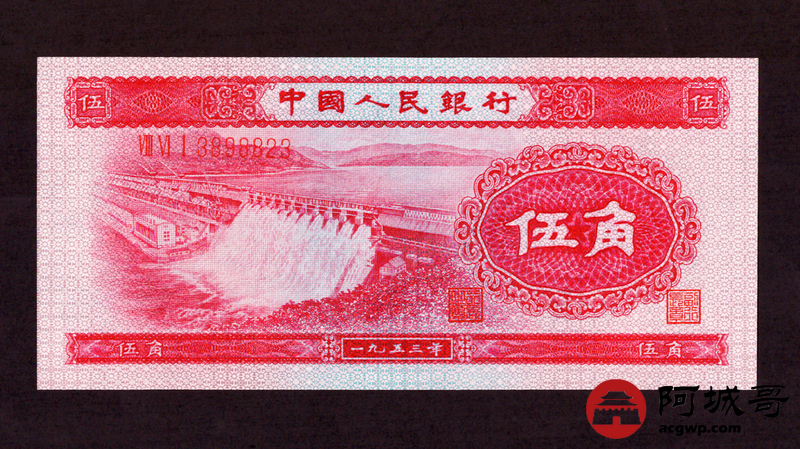 Lot:2 二版 1953年 伍角浅水坝 94成新