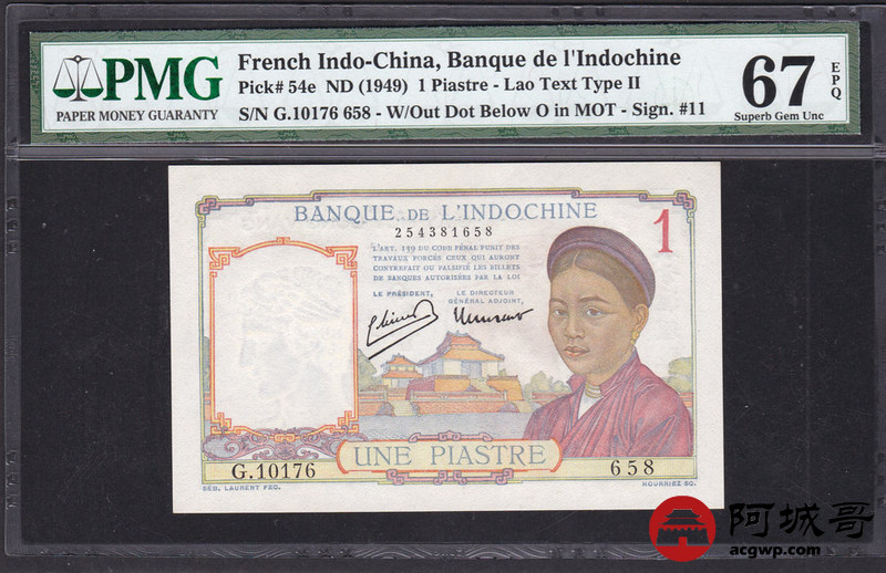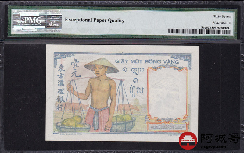 Lot:19 东方汇理银行 壹圆 法属印度支那 PMG 67EPQ