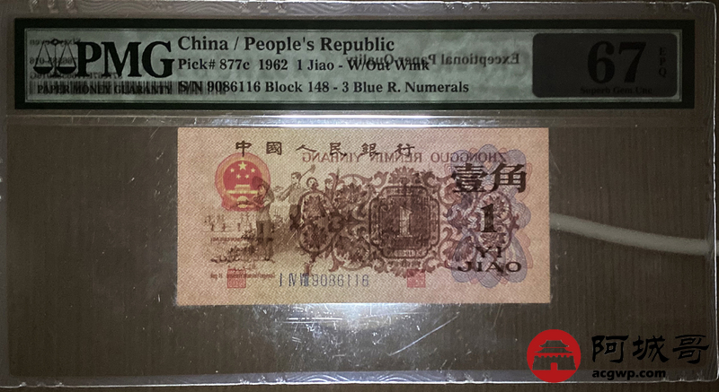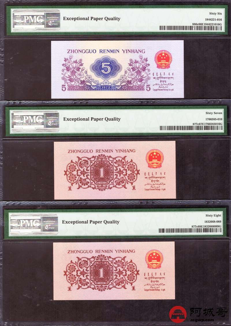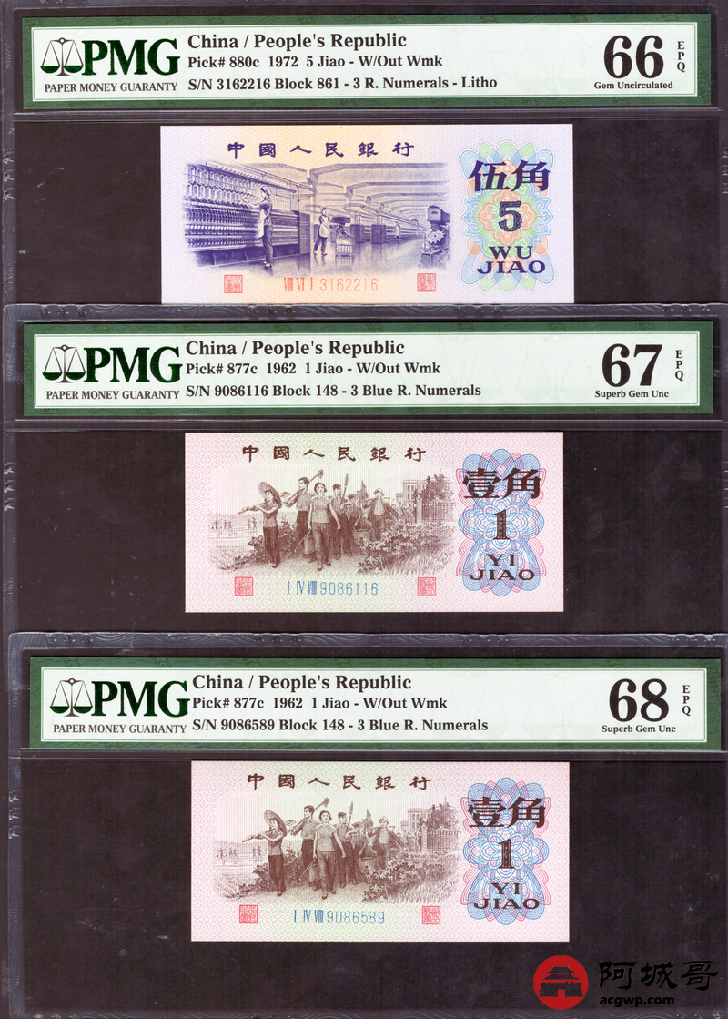 Lot:30 三版人民币 伍角、壹角 PMG 68EPQ、PMG 67EPQ、PMG 66EPQ 好号无47
