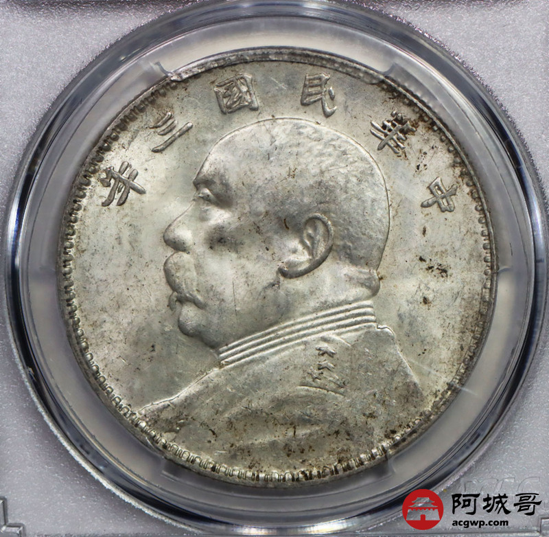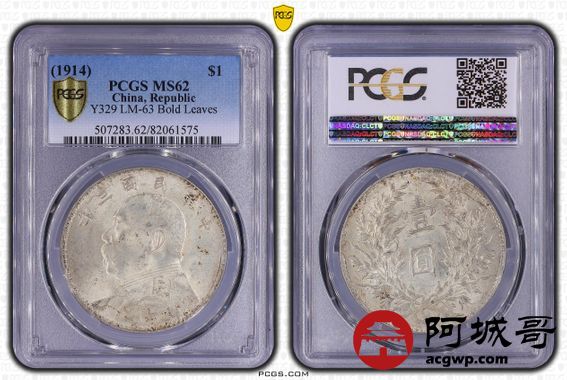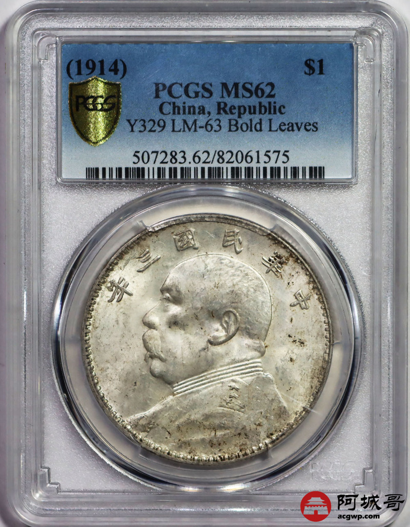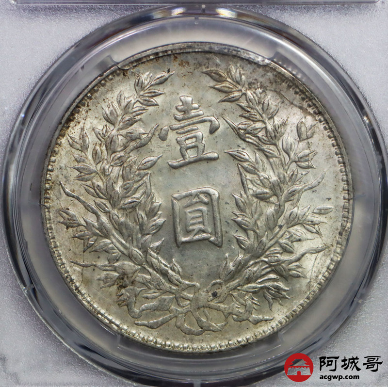 Lot:21 原味转光 民国三年大头 竹节花 壹元 PCGS MS 62