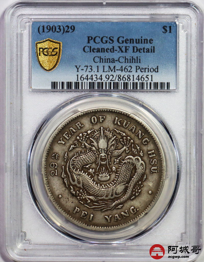 Lot:36 原味 清包浆 北洋29年龙洋 七钱二分 PCGS XF