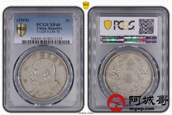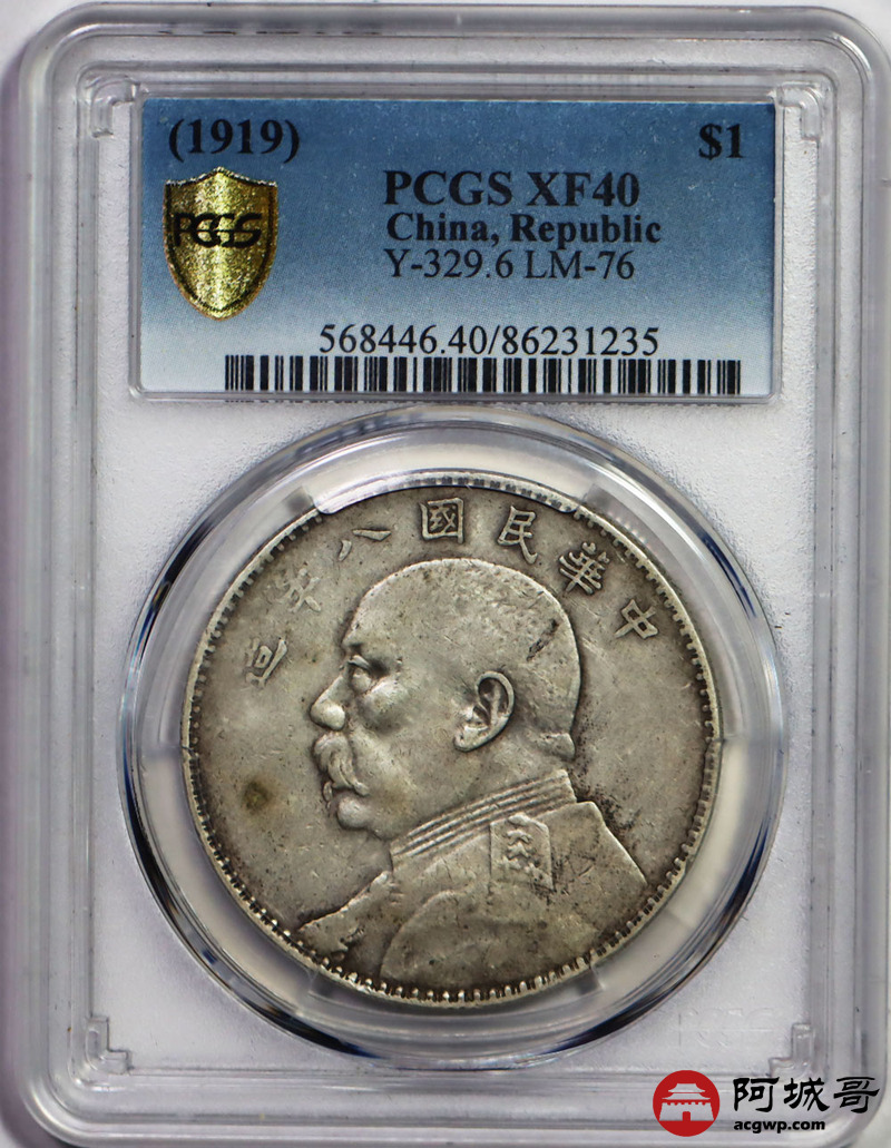 Lot:41 原味 民国八年大头 壹元 PCGS XF 40