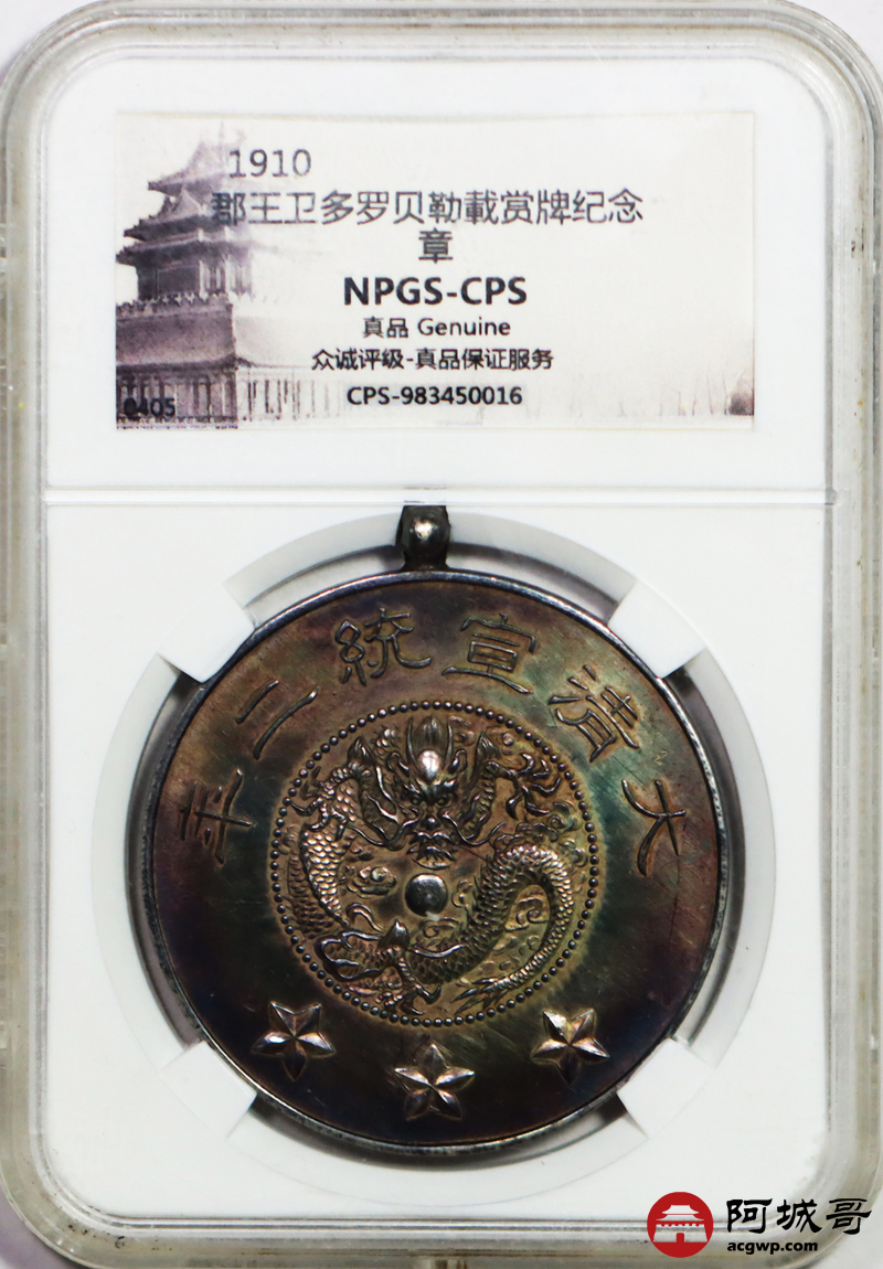 Lot:27 郡王卫多罗贝勒载赏牌纪念章 众城评级 真品