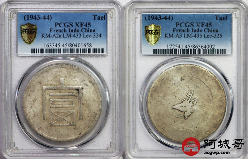 Lot:29 原味 包浆 云南小鹿头 正银一两 PCGS XF 45 原味 包浆 云南大富 正银一两 PCGS XF 45 两枚一组