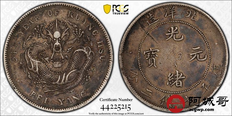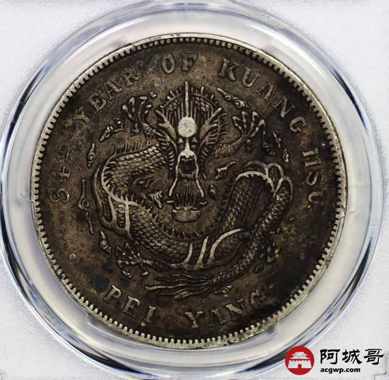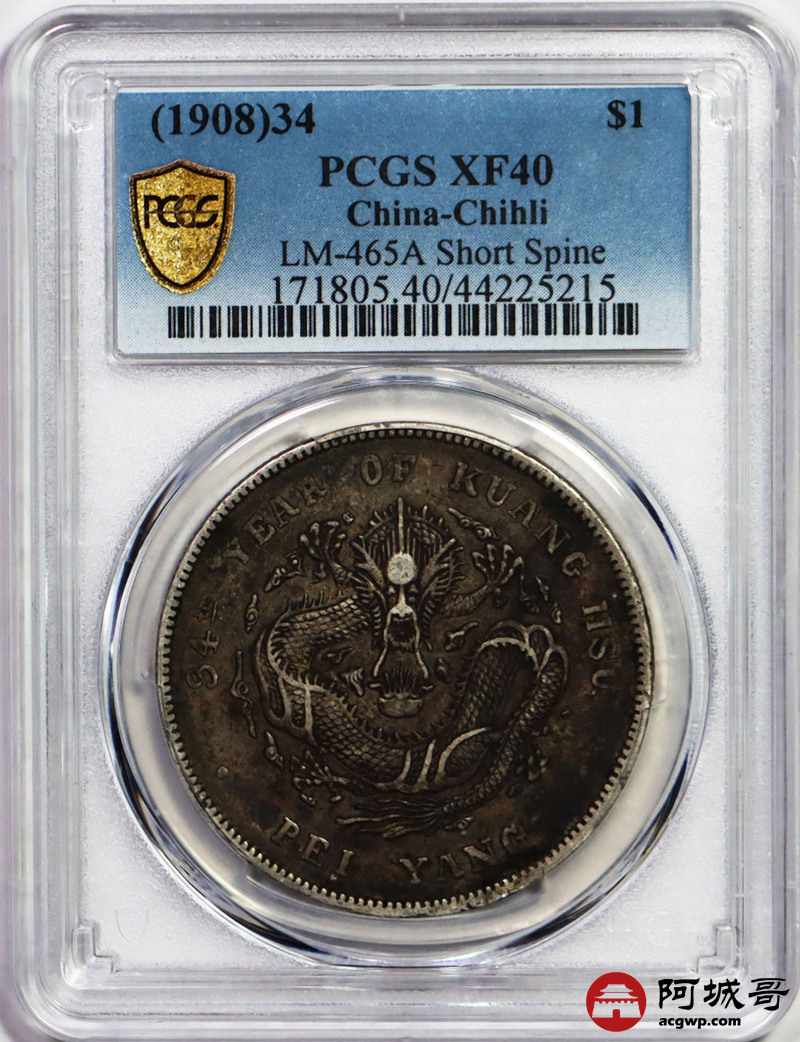 Lot:8 酱彩北洋34七钱二分短尾龙 PCGS XF40