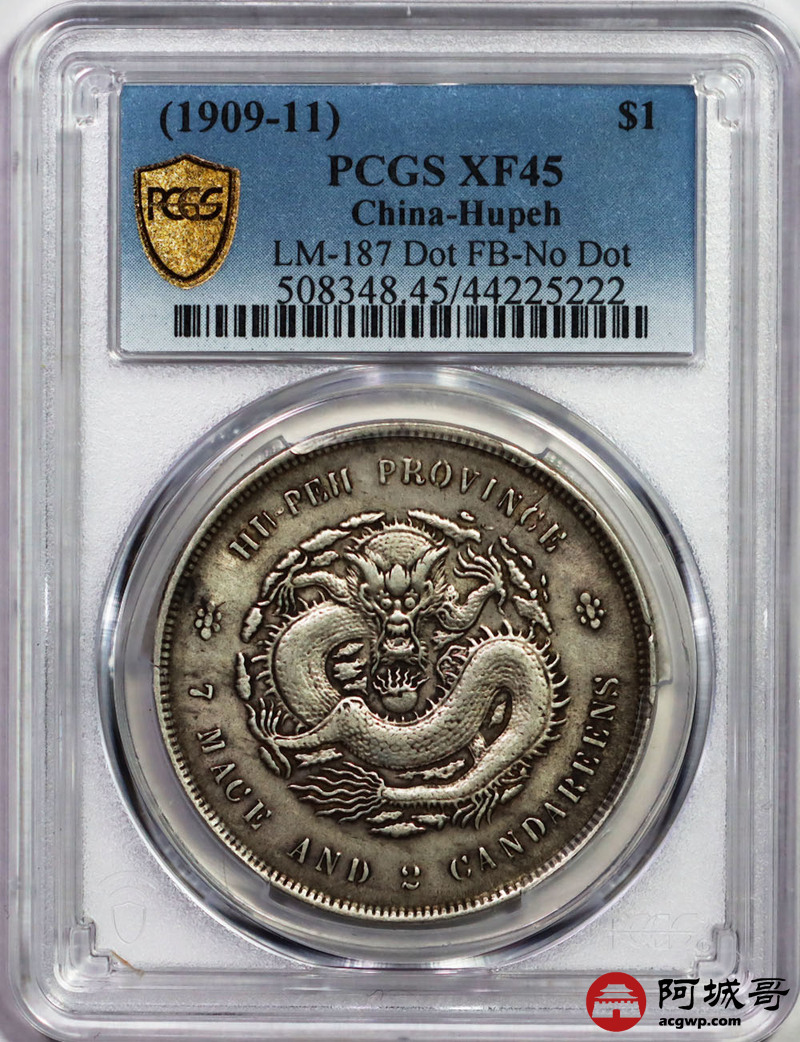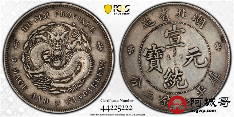 Lot:9 原味湖北宣统七钱二分PCGS XF45