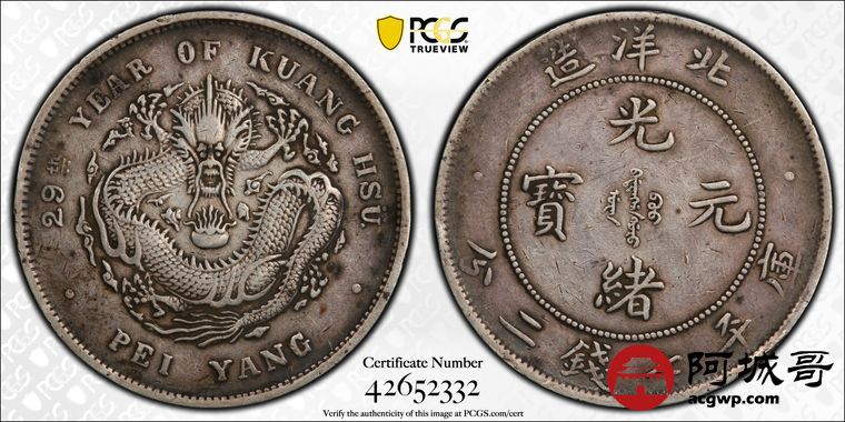 Lot:42 老包浆北洋29七钱二分PCGS XF40