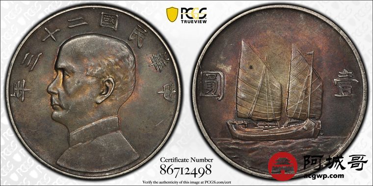 Lot:19 酱彩 二十三年船洋 PCGS MS61