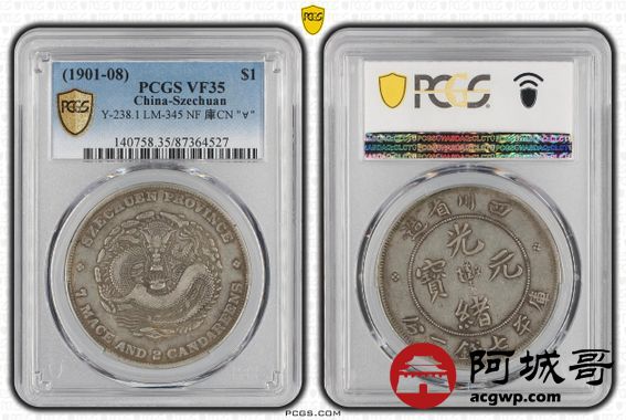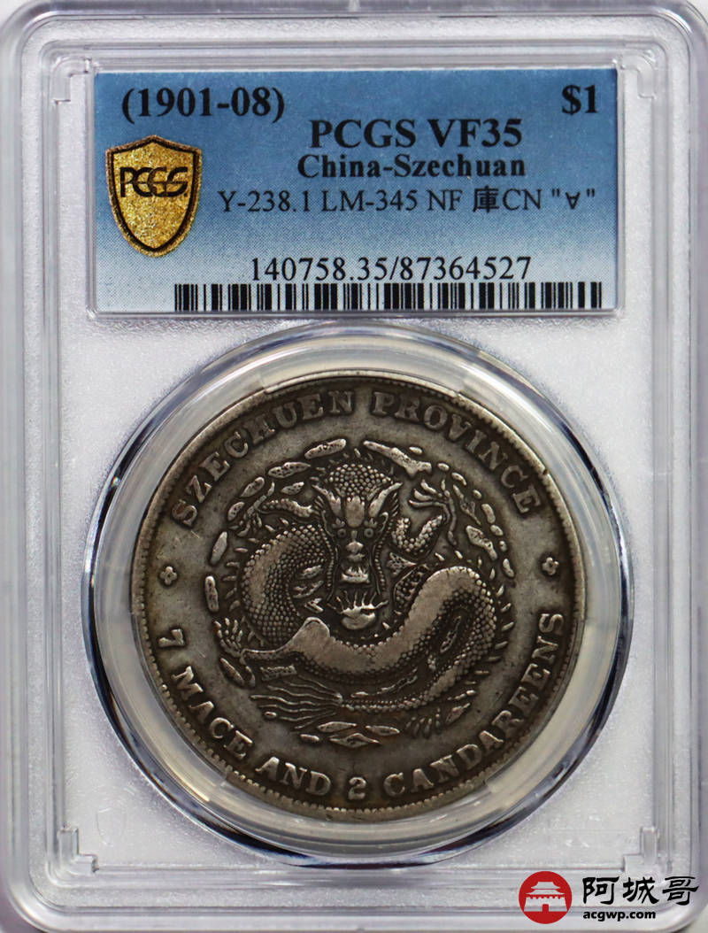 Lot:24 原味老包浆四川光绪七钱二分倒PCGS VF35