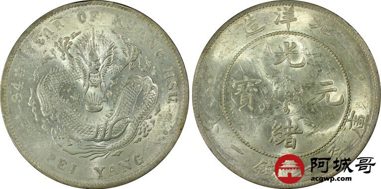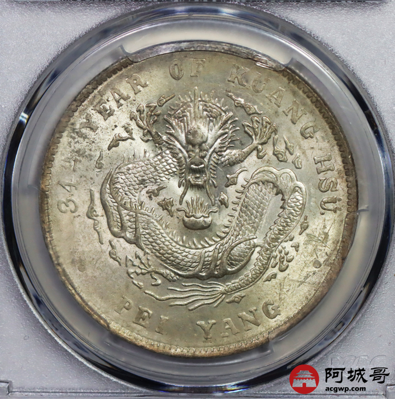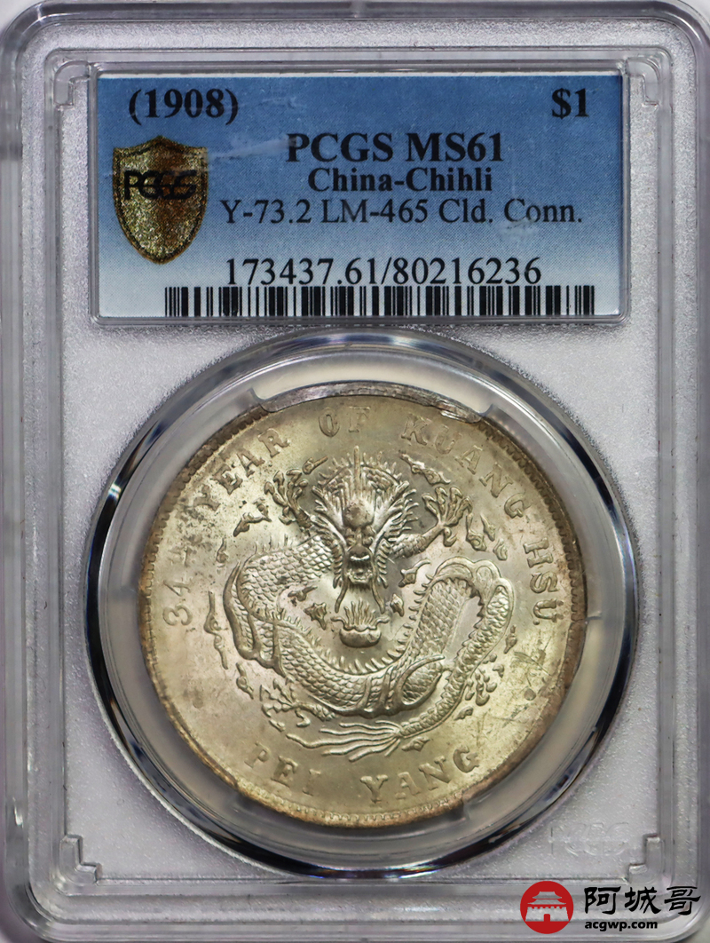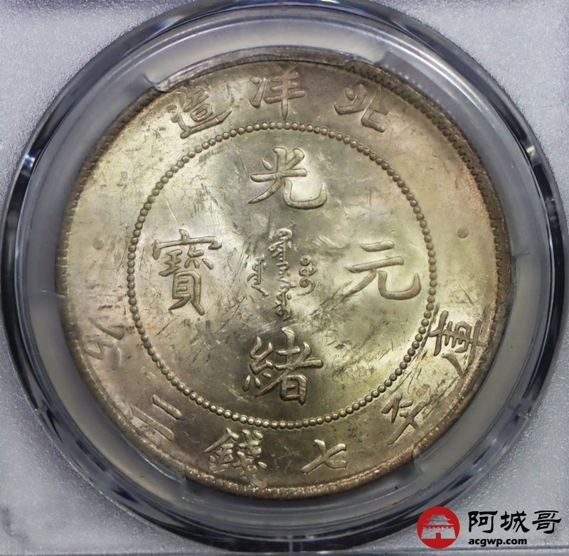 Lot:14 黄油转光 高额头北洋34七钱二分PCGS MS61
