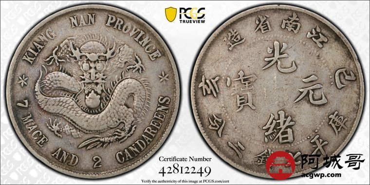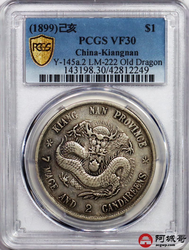 Lot:5 原味老包浆江南己亥七钱二分老龙PCGS VF30