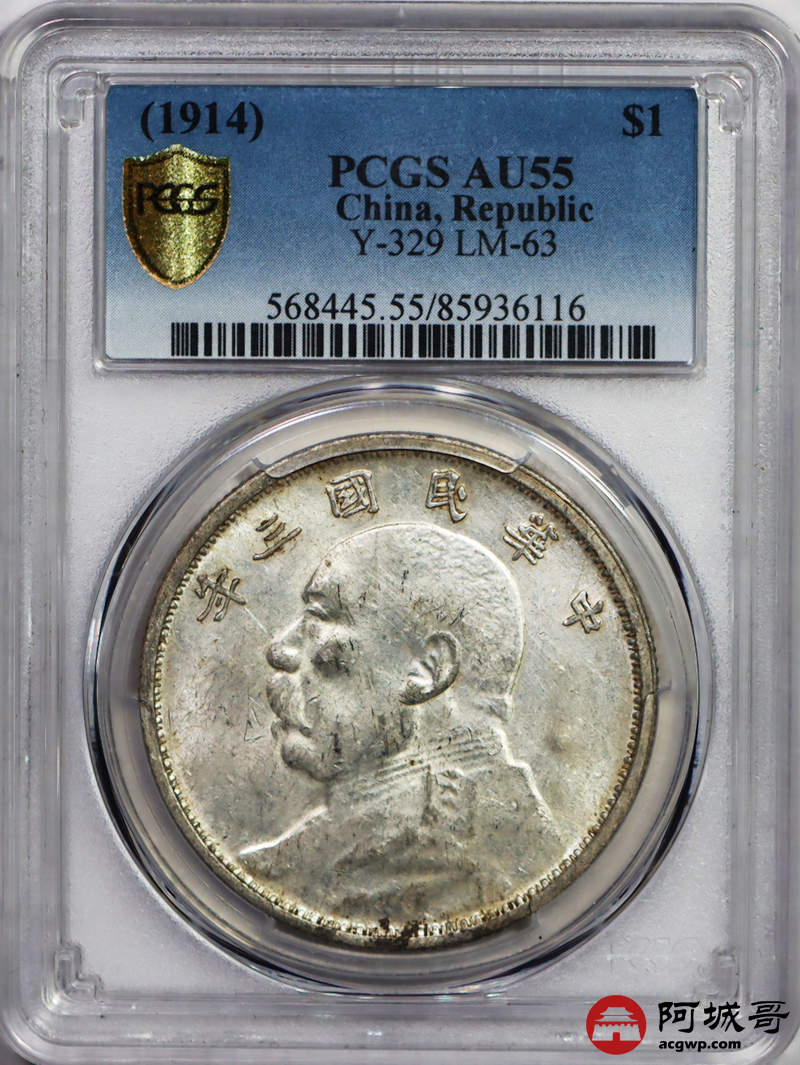 Lot:26 底光原味云南版大头壹圆 PCGS AU55
