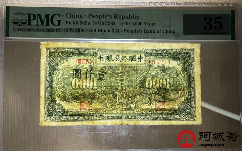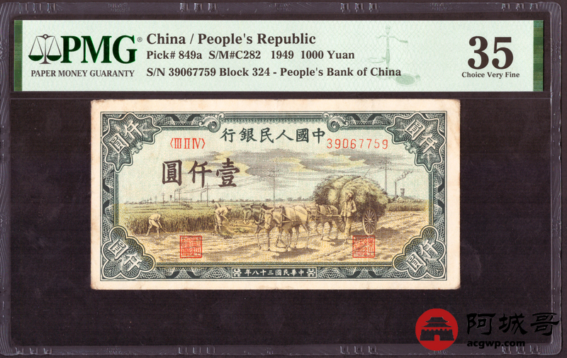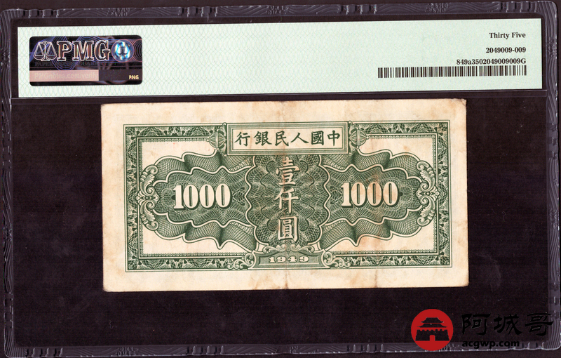 Lot:21 一版 民国38年 壹仟圆秋收 PMG 35